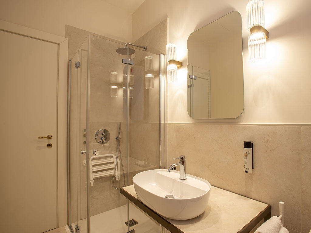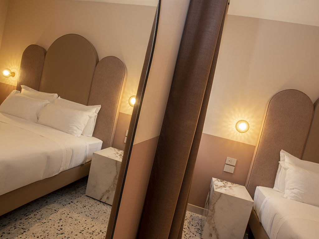 Spacious, bright, and overlooking the Corte de l’Albero, the King Double rooms offer an elegant and carefully curated space.