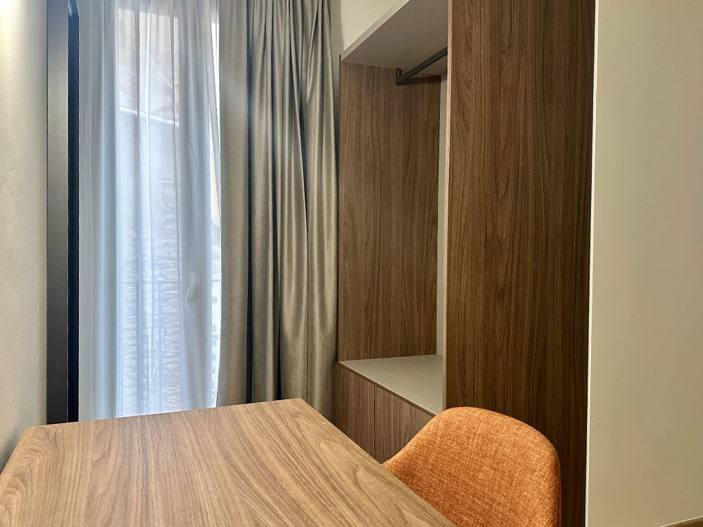 Intima e raccolta, la camera matrimoniale di Fenice Studios si affaccia su una tranquilla corte interna ed è pensata per soggiorni brevi all’insegna del comfort. Lo stile contemporaneo si inserisce con rispetto nella cornice di un palazzo antico, offrendo il piacere della modernità senza rinunciare all’anima veneziana.